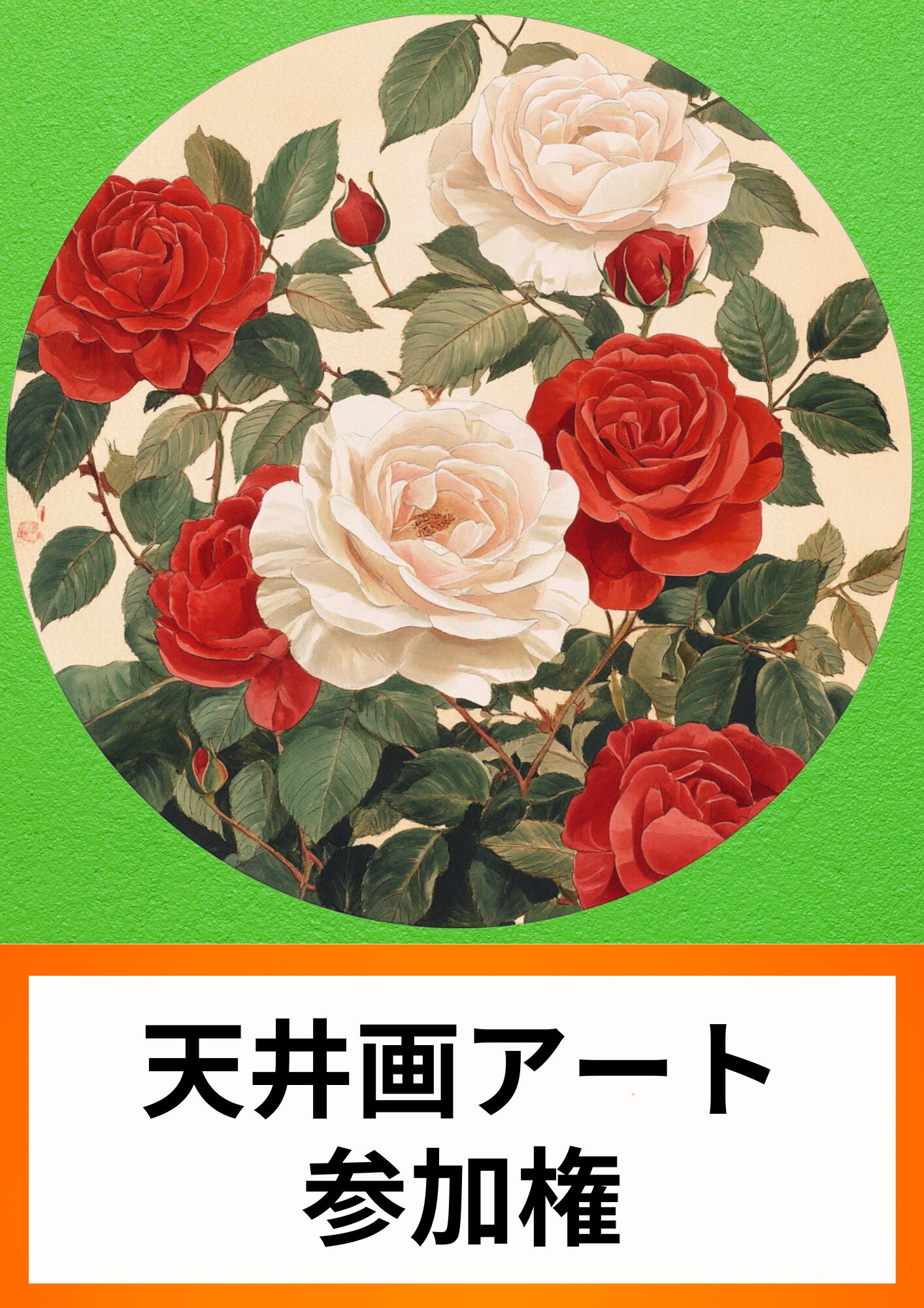 本ギャラリーの天井画は、伝統的で美しい風景や植物、抽象的なパターンなどの自然をテーマにした作品を歓迎します。写真にあるような、季節の花や風景、心地よさを感じるイメージを目指して制作してください。
